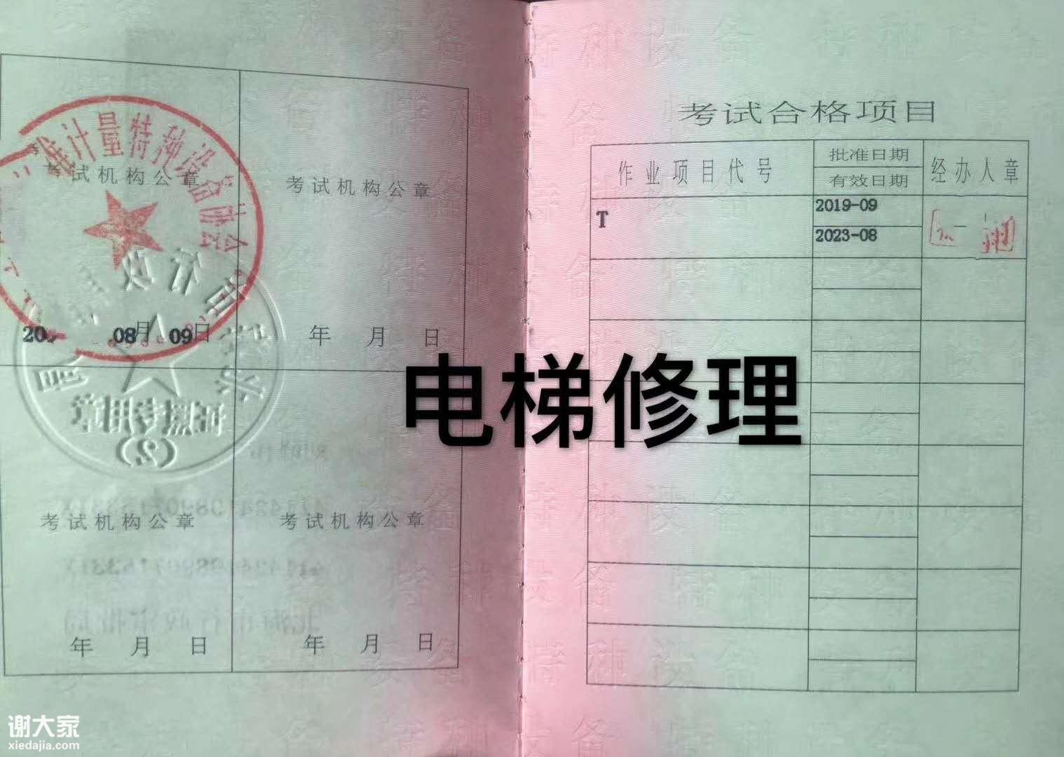 2、电梯维修证原件