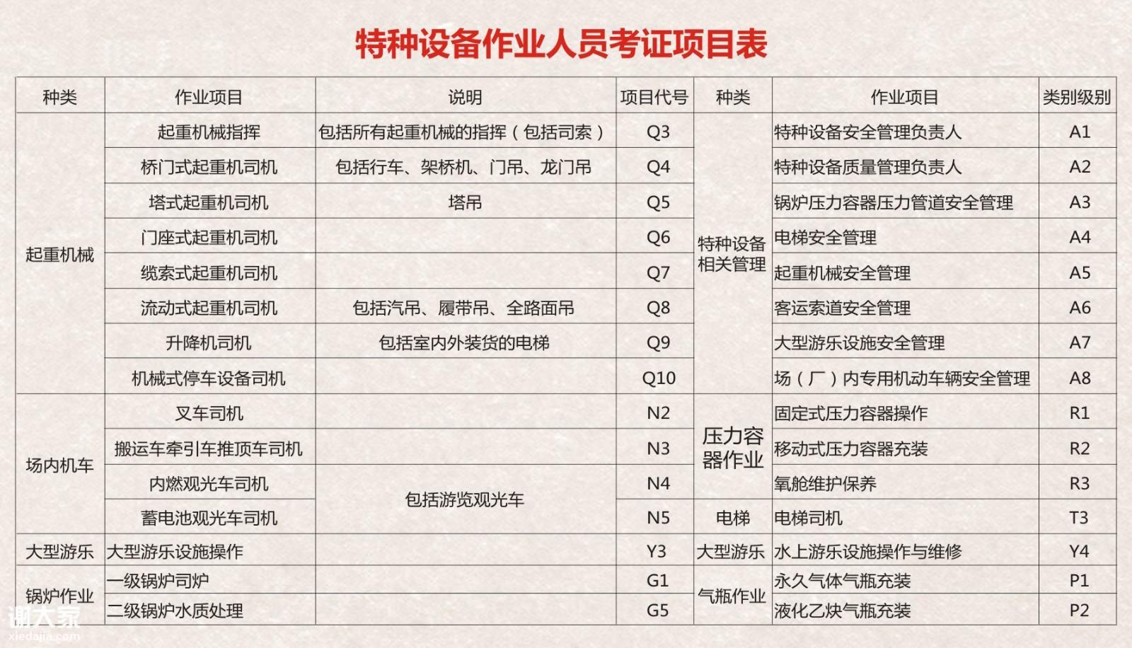 最后是特种设备的安全管理员A证,这个是包含了电梯安全管理,厂内车辆安全管理、锅炉安全管理等等,八证合一。