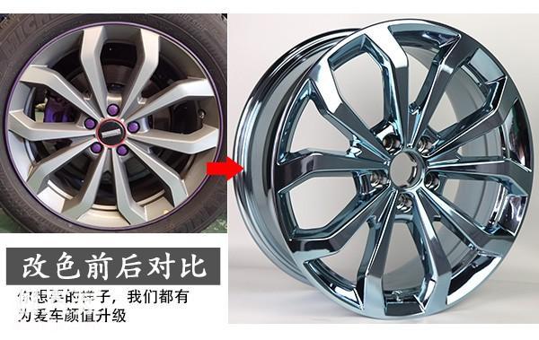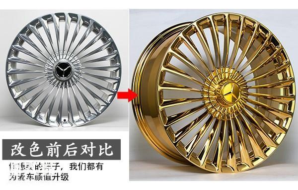 看完单个轮毂电镀改色前后的效果展示后,我们来看一下轮毂电镀改色后装车的效果展示。