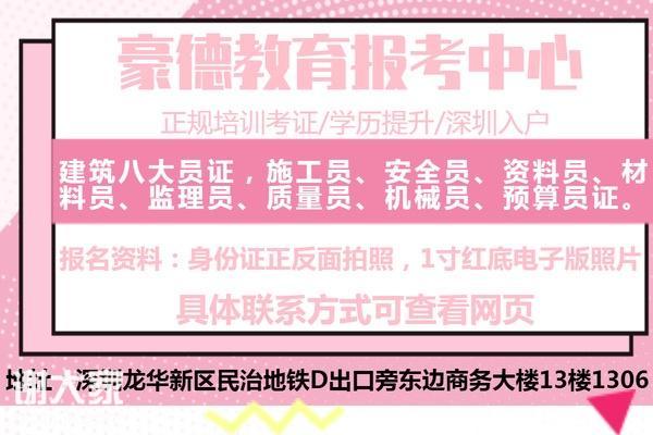深圳市豪德教育培训中心做为中国建设教育协会指定施工员、安全员、资料员、材料员、质检员培训点、报考点、考点,培训·近专业、通过率·高,考证·快。