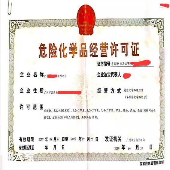 荔湾区危险化学品经营许可证的办理