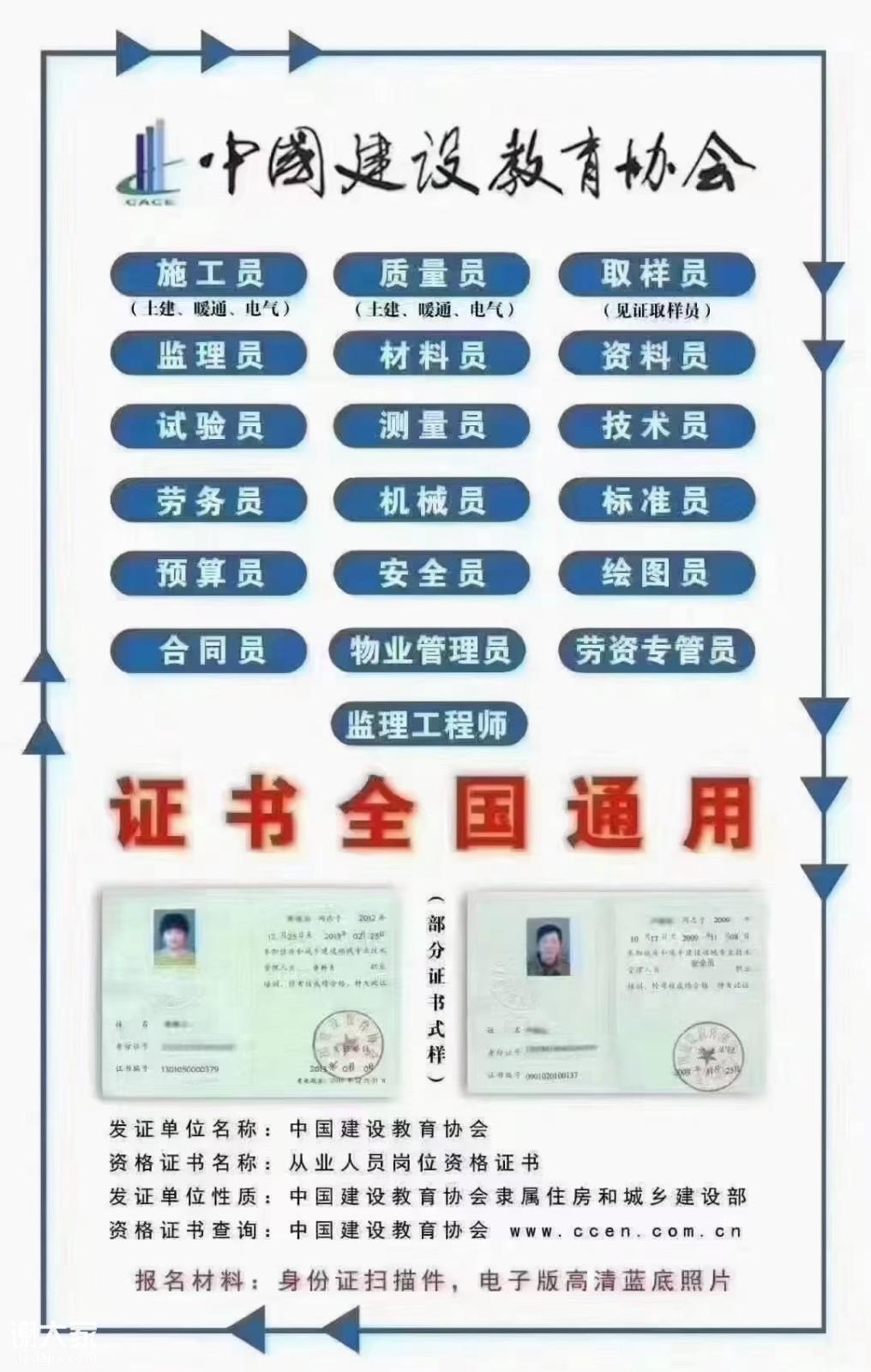 建筑八大员考试合格,颁发由“中国建设教育协会”培训学员合格者,颁发《职业培训合格证书》。持证上岗,证书全国通用。教育培训中心郑重承诺:所发证书均属中国建设教育协会颁发全国通用,网上查询。