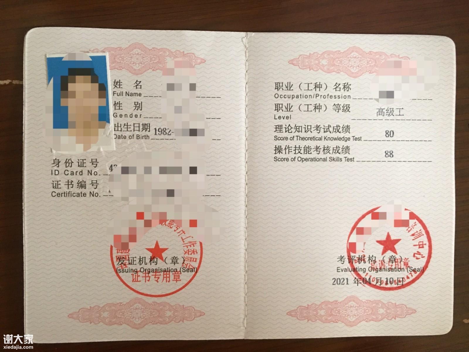 证书颁发机构:住房城乡建设行业,中国建设劳动学会监制