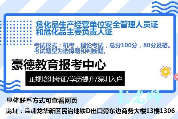 年深圳报考危险化学品经营单位主要负责人证和安全管理人员证什么时候考试,怎么报名,在哪里报名,需要多少钱,报名要提供什么资料,报名条件与要求是什么等详情请咨询豪德教育的彭老师。
