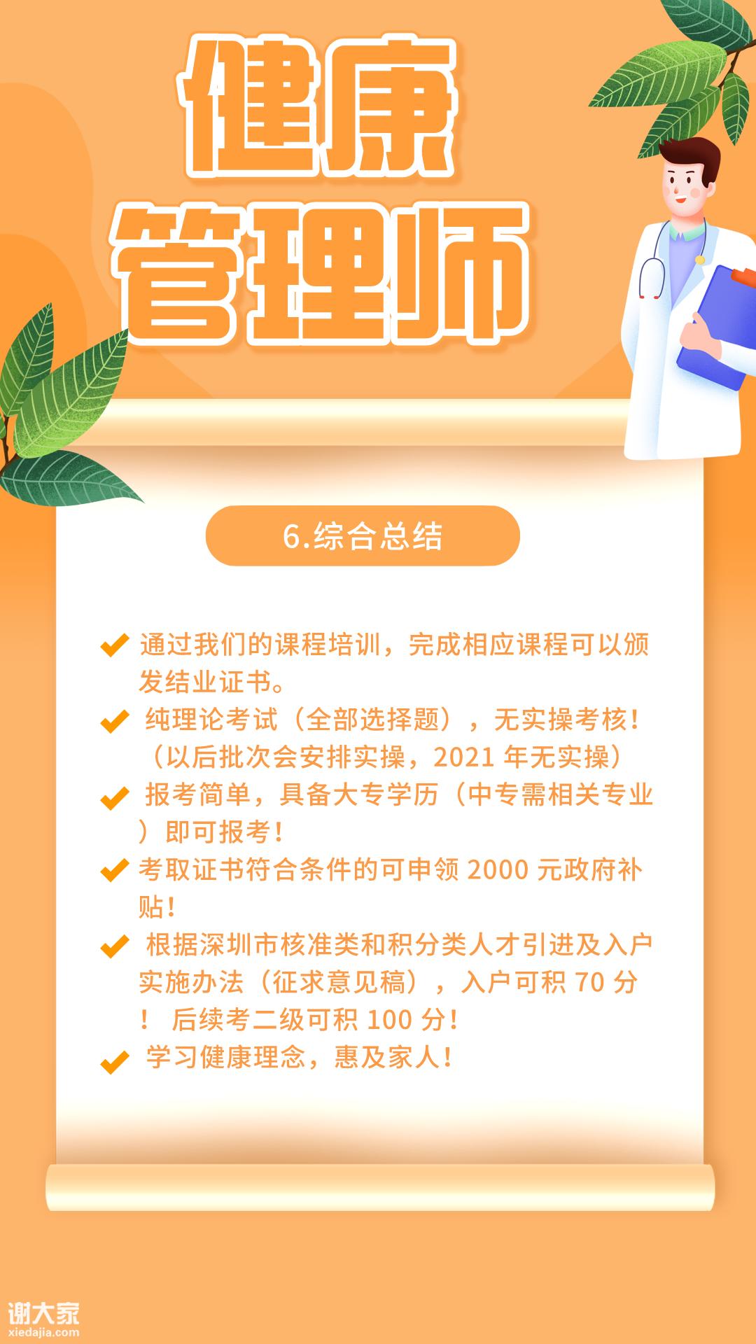 2.报名健康管理师可到社保中心领到2000元技能提升补贴