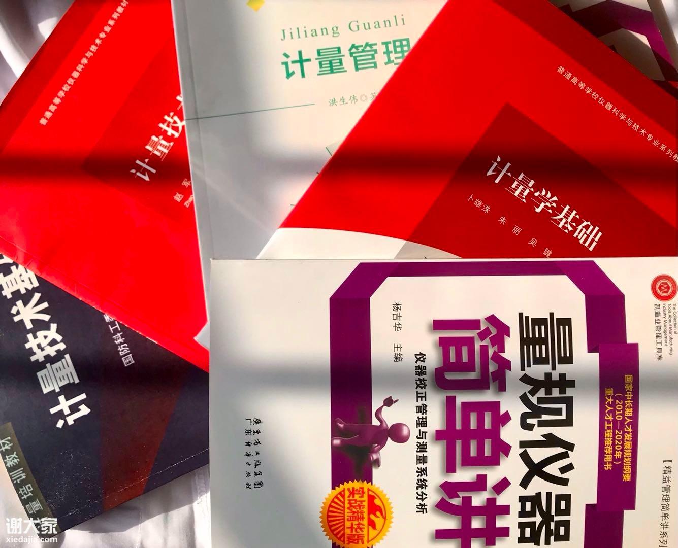 四、计量器具操作实务选讲: 几何计量:量块、卡尺千分尺、百分表千分表、环规塞规、显微镜、投影仪、二/三次元坐标测量仪、测长仪、标准线纹尺等。 热学计量:温度计、热电偶、热电阻、温控表、环境试验箱、温度记录仪、数字式温湿度计、红外测温仪、红外热像仪、电炉等。 力学计量:各类天平、砝码、衡器、测力仪、扭矩仪、扭矩传感器、材料试验机、硬度计、压力表、压力传感器、压力变送器等。 电学计量:万用表、多功能校验仪、电流、电压、电阻测试设备;电桥、电位差计;电感、电容、阻抗测试仪、电磁辐射测量等。 化学计量:酸度计、电导率仪、分光光度计、气相色谱仪、离子色谱仪、各种粘度计、化工仪表、分析仪器等。 容量计量:罐、储液槽、船舶舱、移液管、分液器、容量瓶、滴定管、金属及玻璃器皿等。 光学计量:光辐射、光度、色度等器具。 声学计量:强、声压、声功率、听力、水声等器具。