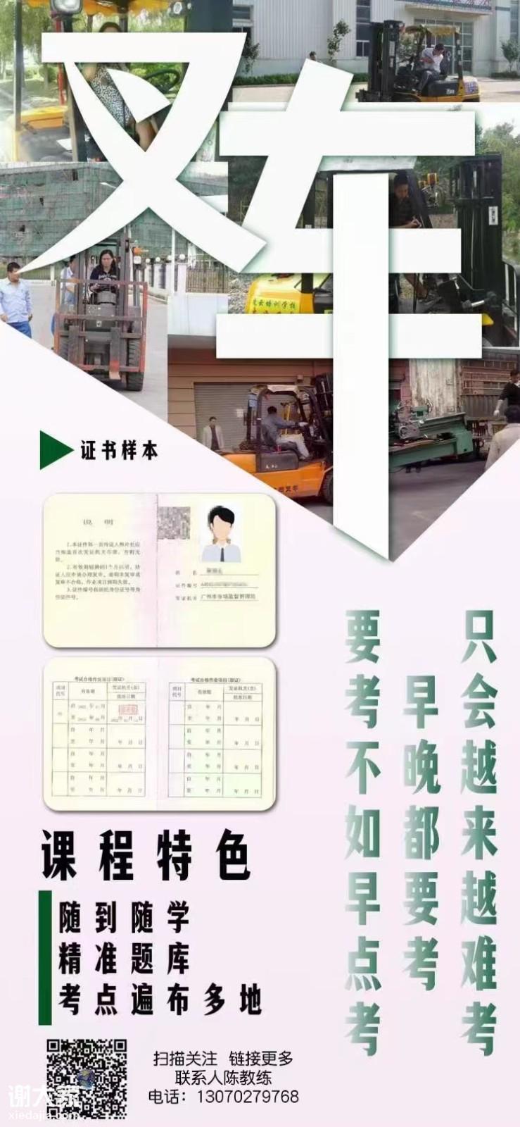 广州番禺石楼考叉车证哪里可以报名?石楼考叉车证多少钱?石楼考叉车证容易吗?