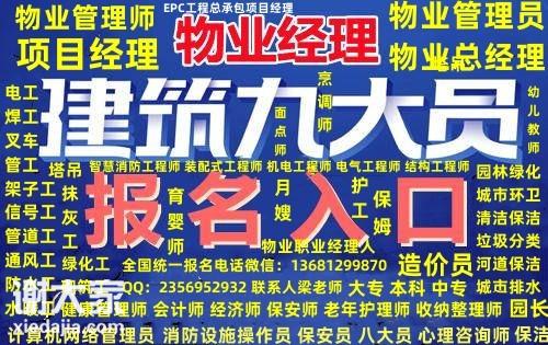 南宁考保安员保洁员消防设施操作员物业经理项目经理报名电话 人力资源管理师、物流管理师报名咨询梁老师、职业经理人、财务管理师、审计管理师报名咨询梁老师、中控安全管理师、平面设计师报名咨询梁老师、形象设计师、家具设计师报名咨询梁老师、景观设计师、包装设计师、室内设计师报名咨询梁老师、广告设计师等报名咨询梁老师 建筑八大员:施工员,监理员,劳务员报名咨询梁老师,安全员,资料员,材料员报名咨询梁老师,预算员,质检员报名咨询梁老师、测量员、机械员、技术员报名咨询梁老师、资料员、取样员等报名咨询梁老师 全国城建培训中心物业经理报名费用1200元 物业项目经理人1400 出证时间:25天。 1、培训方式:报名成功后开通在线视频学习帐号线上学习