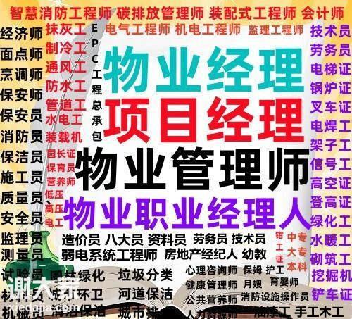 物业经理、物业项目经理、物业管理师、物业管理员、房地产经纪人、AAA级信用证、BIM工程师,BIM工程师,装配式BIM工程师,市政BIM工程师、智慧消防工程师、保安员、保洁员、中控员、建筑八大员联系郭老师、监理工程师、园林绿化工程师、城市环卫管理师联系郭老师、垃圾处理工程师、清洁管理师、碳排放管理师联系郭老师,碳排放咨询师等、电工、焊工、塔吊、装载机、挖掘机、起重机、EPC工程总承包项目经理等报名联系郭老师