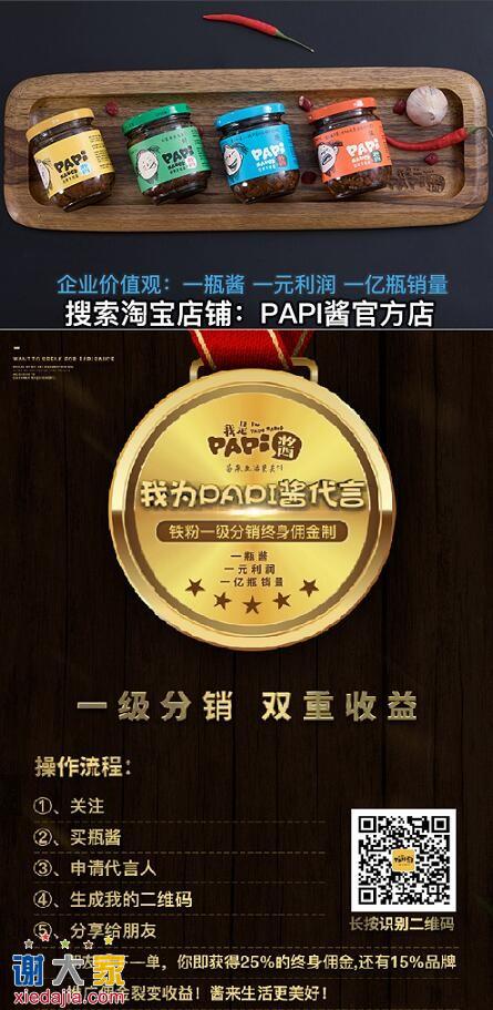综合以上,依朋友推荐,Papi酱是一个可以相信、尝试并且能够获利的可靠的创业型微商项目。酱类界"诺贝尔”谨为品质颁奖——papi酱,不仅有优质的产品、优质的平台,更有优质的营销运营理念和足够的资金发展,或许真的可以帮我们成就优质的事业。