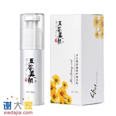 五谷美肌洋甘菊舒缓修护精华乳,内含橄榄提取物,金黄洋甘菊提取物还有车前叶蓝蓟籽油——不仅深入补水保湿,肌肤净爽水润而且持久抗红是它特别的地方,这款精华专门针对敏感肌研制的,它与普通的修红产品“暂时修红”不同,因为它除了修红,还能使肌肤柔软亲和肌肤,保证了肌肤的角质层不受损伤,从而平衡油脂分泌,真正做到了持久修红,角质层变厚了,红血丝也慢慢消失了,有效支持皮肤自身保护功能重启,修复皮肤基质,防护紫外线造成的损伤,防止肌肤衰老提前发生。同时,洋甘菊具有很好的舒敏、修护敏感肌肤作用,其黄酮类活性成分具有消炎镇静的作用,对于激素脸的瘙痒和痘痘能快速见效,有助于维系肌肤健康环境。