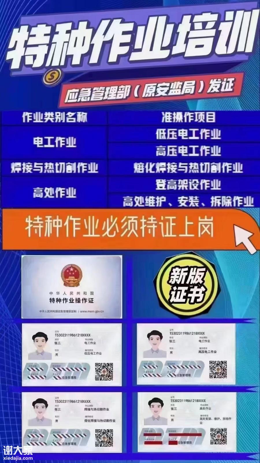 1、特种作业操作证:作业种类:电工(俗称操作证、上岗证)。分类:高压运行维护作业、高压安装修造作业、低压电工作业、安装、维修、发电、配电。