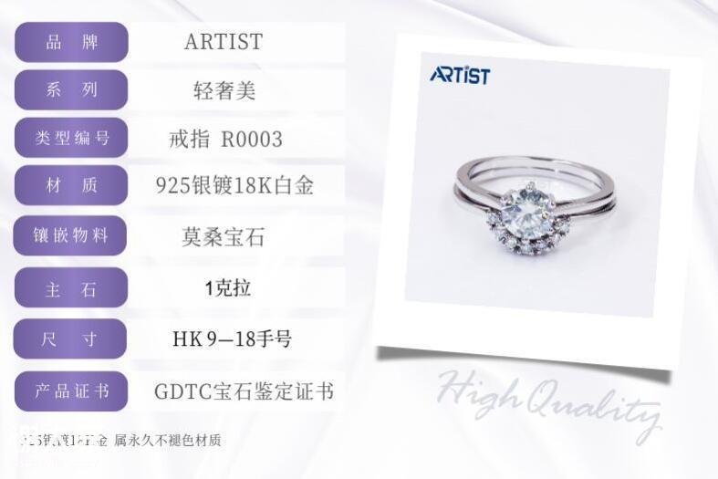 ARTIST雅蒂斯一直坚持初心,雅蒂斯相信科技带来进步,怀着对科技的敬畏,对钻石的热爱,始终坚持深耕在莫桑石的行业。雅蒂斯希望,每个年轻人都有权利去追求爱,而不是被昂贵的钻石阻拦在门外,真爱才是无价,真爱才是奢侈。雅蒂斯拥有2万平米大型切割工厂、镶嵌工厂,拥有员工100多人,拥有设计师15名,工匠5名,一直坚持原创设计,坚持用更好的工艺来展现莫桑石的独特之美。