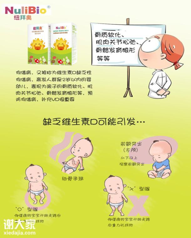 NuliBio纽拜奥牌维生素D滴剂为宝宝提供所需的营养成分。在生活中,我们都懂缺乏维生素D会诱发佝偻病这个常识,轻度维生素D缺乏:可能会引起风颅骨软化、囟门增大、轻度的方颅、串珠、肋软骨沟等改变;中度缺乏可见典型的串珠、手镯、肋软骨沟、轻度或中度的鸡胸、漏斗胸、O或X型腿,也可有囟门晚闭、出牙迟缓等明显的改变。重度的甚至可见明显的肋软骨沟、鸡胸、漏斗胸、脊柱畸型、O或X型腿、病理性骨折等严重改变。可以看出维生素D对宝宝健康发展的重要性,宝妈应该观察宝宝的情况,及时给宝宝补充维生素D,成为一个健康快乐的宝宝。