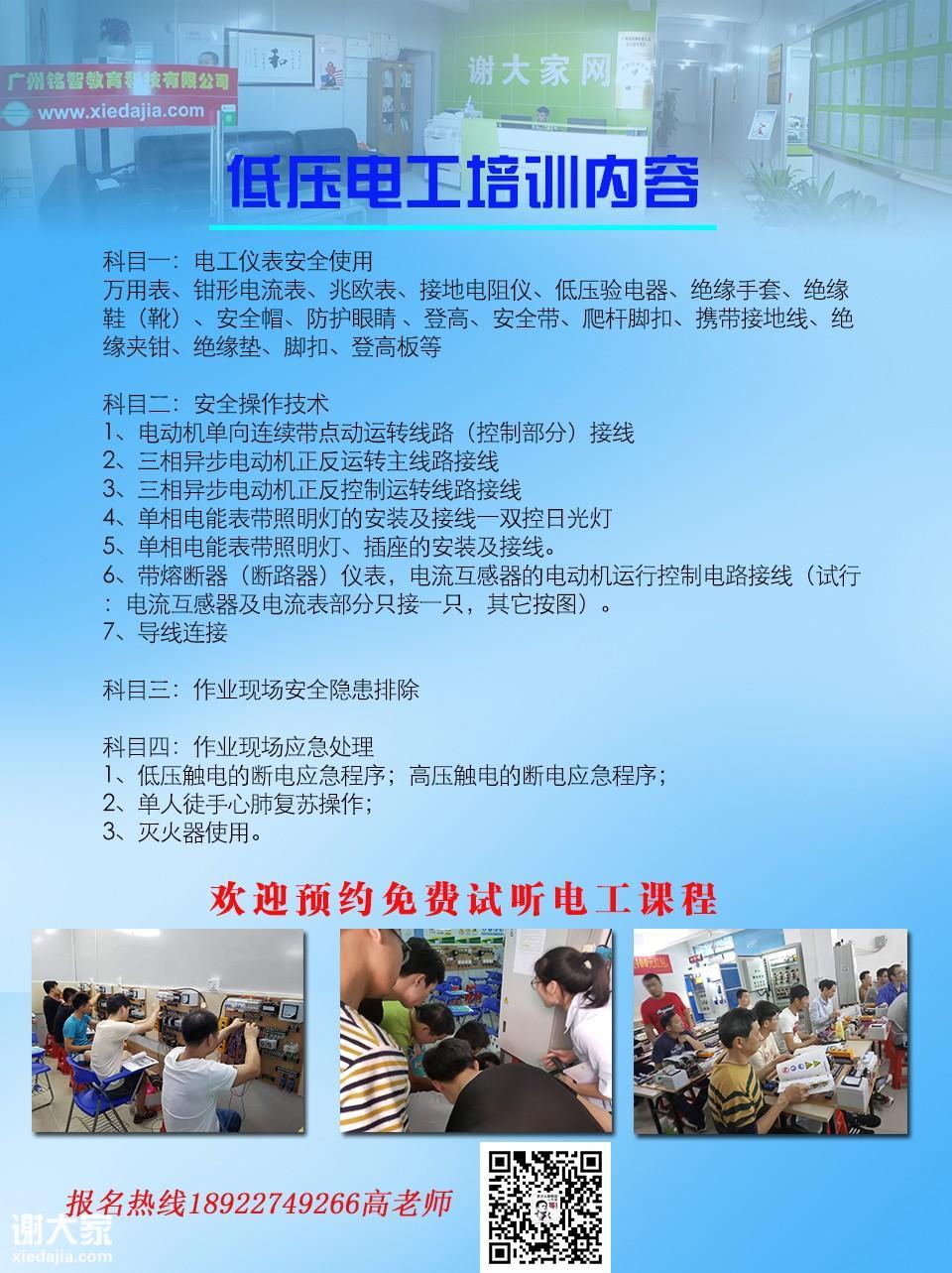 广州铭智教育培训中心低压电工作业培训班招生简介