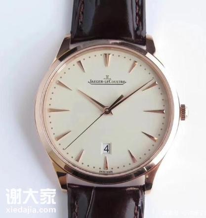 积家超薄系列。腕表尺寸40mmX8mm。极致简约,成就经典,干净素雅,商务。优雅的表耳舒适贴手。采用精准而低返修的9015机芯改积家自产899型机芯,表带采用进口意大利小牛,纹理自然,质地柔软,佩戴透气。