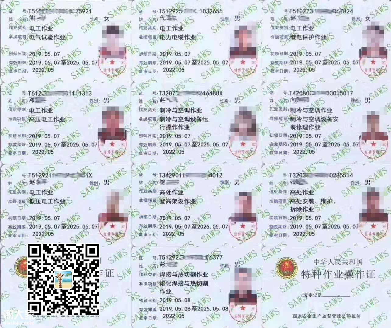 当然,我们这里不仅有焊工证年审换证,其他的特种证书,都可以找姚老师报名的。如电工证、高处作业证、制冷证、高压证、危化品管理员证等等,都可以咨询姚老师。我们是南沙考场定点报名单位。学习只需要在家通过手机学习即可,无需请假到考场培训。为广大务工人员节省时间和成本。很多学员都只是直接快递资料给姚老师,然后等姚老师通知去考